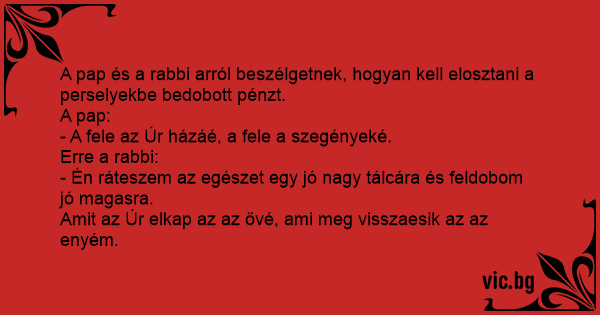 A pap és a rabbi arról beszélgetnek, hogyan kell elosztani a perselyekbe bedobott pénzt.
