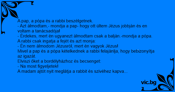 - Azt álmodtam,- mondja a pap- hogy ott ültem Jézus jobbján és en voltam a tanácsadója!