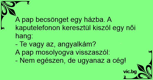 A pap becsönget egy házba. A kaputelefonon keresztül kiszól egy női hang: