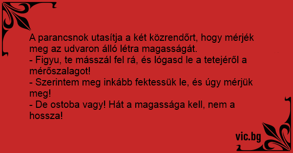 - De ostoba vagy! Hát a magassága kell, nem a hossza!