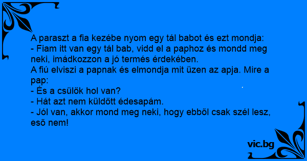 - Fiam itt van egy tál bab, vidd el a paphoz és mondd meg neki, imádkozzon a jó termés érdekében.