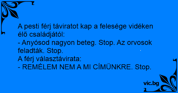 A pesti férj táviratot kap a felesége vidéken élő családjától: