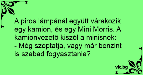 A piros lámpánál együtt várakozik egy kamion, és egy Mini Morris. A kamionvezető kiszól a minisnek: