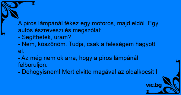 - Dehogyisnem! Mert elvitte magával az oldalkocsit !