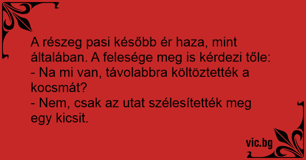 A részeg pasi később ér haza, mint általában. A felesége meg is kérdezi tőle: