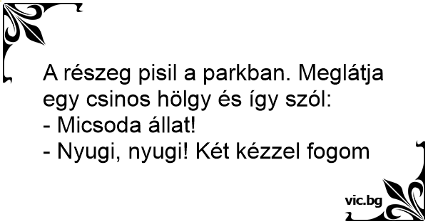 A részeg pisil a parkban. Meglátja egy csinos hölgy és így szól: