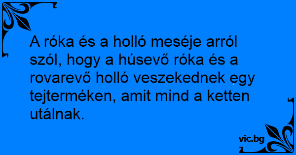 A róka és a holló meséje arról szól, hogy a húsevő róka és a rovarevő holló veszekednek egy tejterméken, amit mind a ketten utálnak.