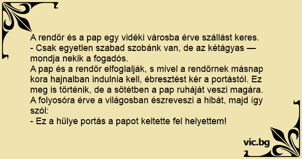 - Csak egyetlen szabad szobánk van, de az kétágyas — mondja nekik a fogadós.