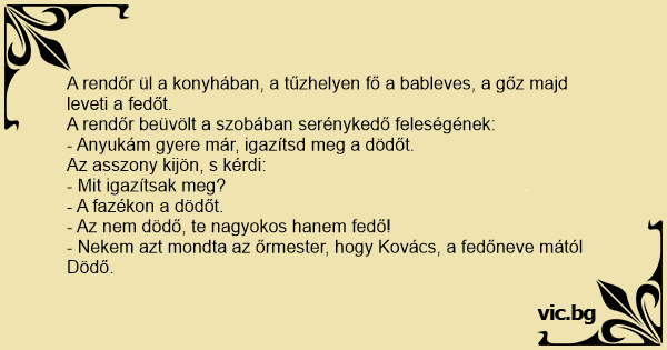 - Nekem azt mondta az őrmester, hogy Kovács, a fedőneve mától Dödő.