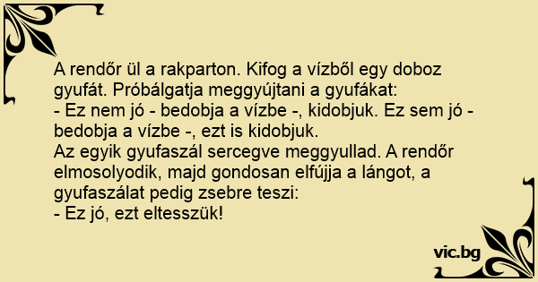 A rendőr ül a rakparton. Kifog a vízből egy doboz gyufát. Próbálgatja meggyújtani a gyufákat:
