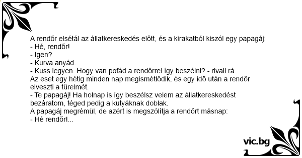 A rendőr elsétál az állatkereskedés előtt, és a kirakatból kiszól egy papagáj: