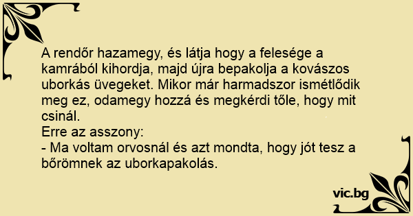 - Ma voltam orvosnál és azt mondta, hogy jót tesz a bőrömnek az uborkapakolás.