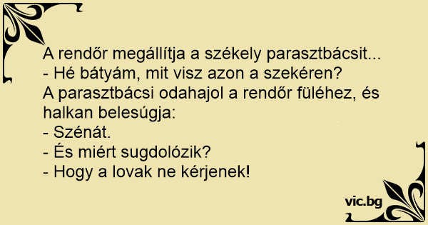 A parasztbácsi odahajol a rendőr füléhez, és halkan belesúgja: