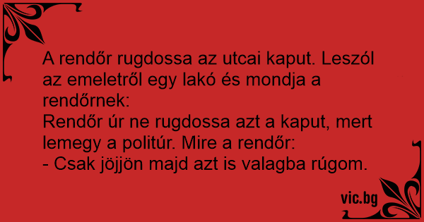 Rendőr úr ne rugdossa azt a kaput, mert lemegy a politúr. Mire a rendőr: