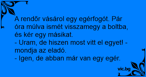A rendőr vásárol egy egérfogót. Pár óra múlva ismét visszamegy a boltba, és kér egy másikat.