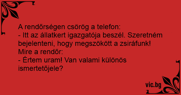 - Itt az állatkert igazgatója beszél. Szeretném bejelenteni, hogy megszökött a zsiráfunk!