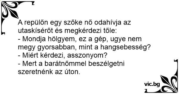 - Mondja hölgyem, ez a gép, ugye nem megy gyorsabban, mint a hangsebesség?