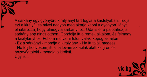- Királyfi ez tuti, hogy a sárkány, menekülj! - mondja a lány.