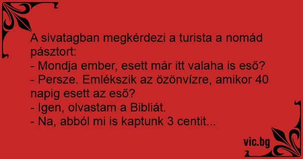 - Persze. Emlékszik az özönvízre, amikor 40 napig esett az eső?