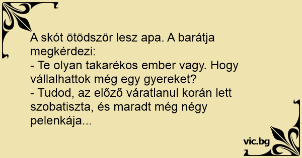 A skót ötödször lesz apa. A barátja megkérdezi: