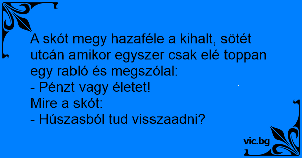 A skót megy hazaféle a kihalt, sötét utcán amikor egyszer csak elé toppan egy rabló és megszólal: