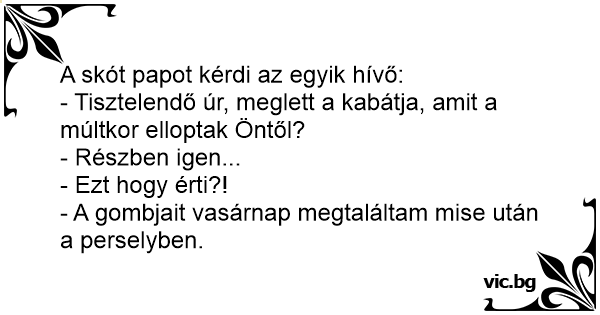 - Tisztelendő úr, meglett a kabátja, amit a múltkor elloptak Öntől?