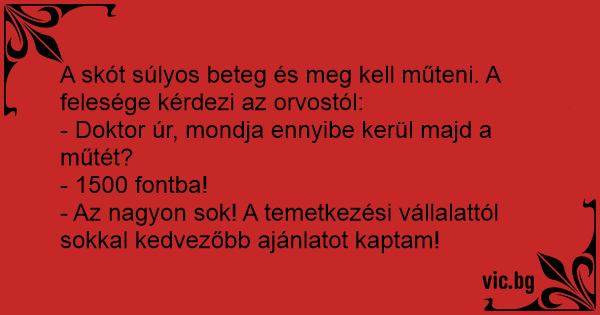 A skót súlyos beteg és meg kell műteni. A felesége kérdezi az orvostól: