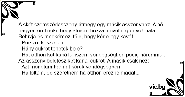 - Hát otthon két kanállal iszom vendégségben pedig hárommal.