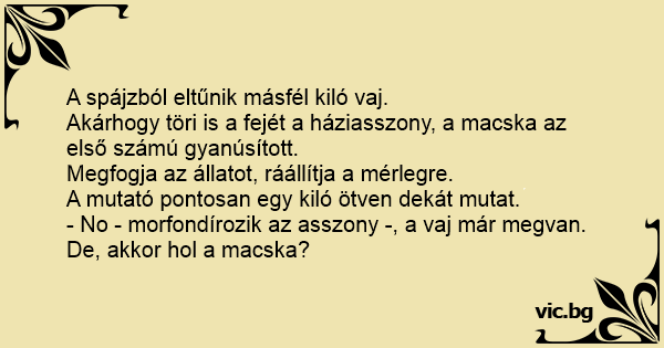 - No - morfondírozik az asszony -, a vaj már megvan.