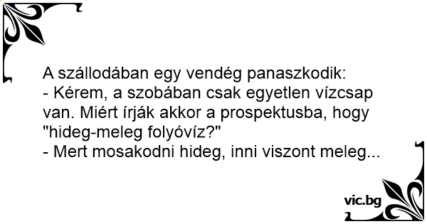 - Kérem, a szobában csak egyetlen vízcsap van. Miért írják akkor a prospektusba, hogy "hideg-meleg folyóvíz?"