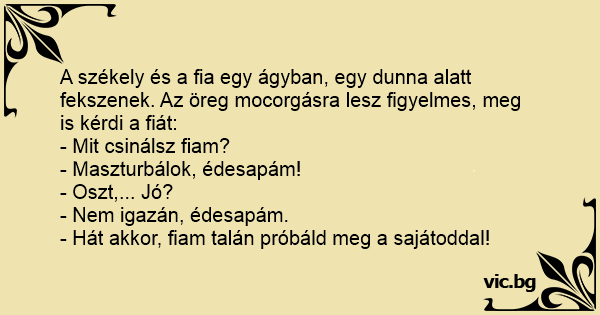 A székely és a fia egy ágyban, egy dunna alatt fekszenek. Az öreg mocorgásra lesz figyelmes, meg is kérdi a fiát: