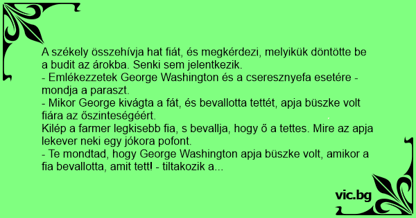 - Emlékezzetek George Washington és a cseresznyefa esetére - mondja a paraszt.