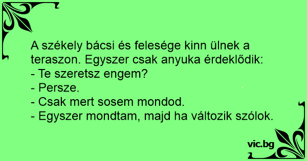 A székely bácsi és felesége kinn ülnek a teraszon. Egyszer csak anyuka érdeklődik: