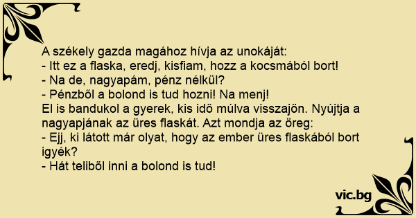 - Itt ez a flaska, eredj, kisfiam, hozz a kocsmából bort!