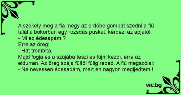 A székely meg a fia megy az erdőbe gombát szedni a fiú talál a bokorban egy rozsdás puskát, kérdezi az apjától: