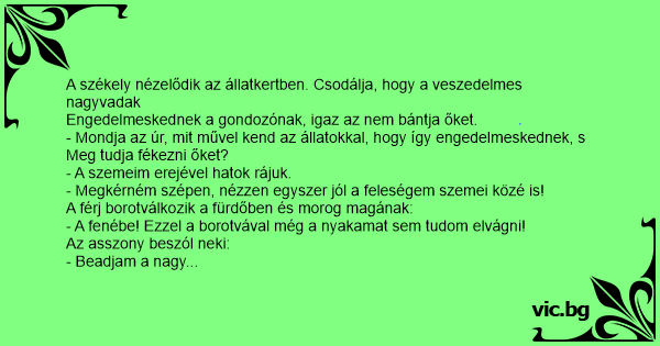 A székely nézelődik az állatkertben. Csodálja, hogy a veszedelmes nagyvadak