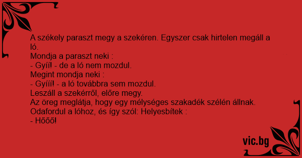 A székely paraszt megy a szekéren. Egyszer csak hirtelen megáll a ló.