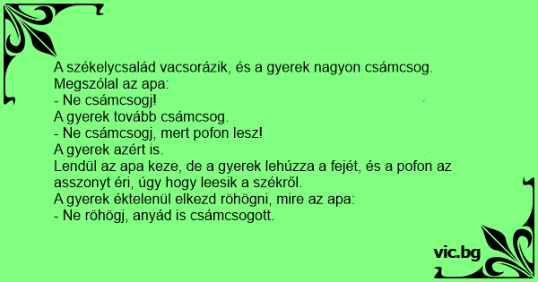 A székelycsalád vacsorázik, és a gyerek nagyon csámcsog. Megszólal az apa: