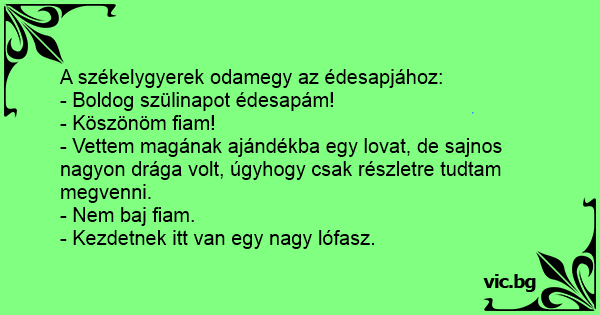 - Vettem magának ajándékba egy lovat, de sajnos nagyon drága volt, úgyhogy csak részletre tudtam megvenni.