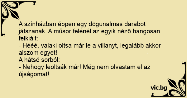 A színházban éppen egy dögunalmas darabot játszanak. A műsor felénél az egyik néző hangosan felkiált: