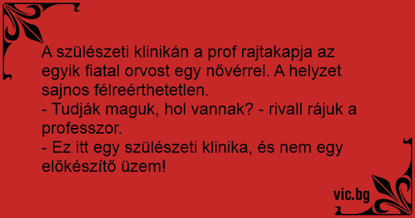 A szülészeti klinikán a prof rajtakapja az egyik fiatal orvost egy nővérrel. A helyzet sajnos félreérthetetlen.
