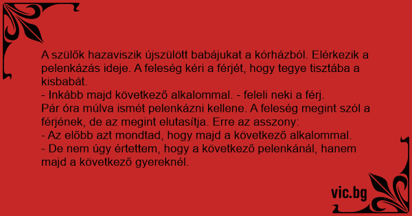 - Inkább majd következő alkalommal. - feleli neki a férj.