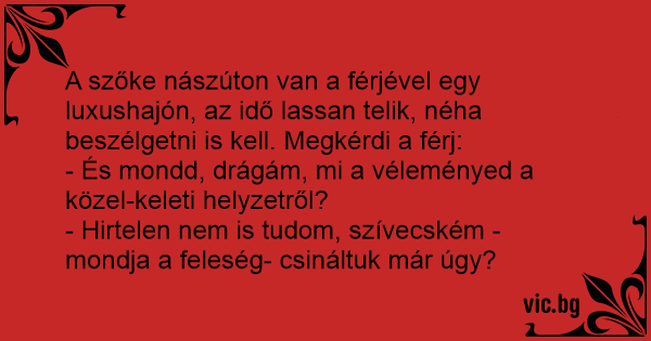 - És mondd, drágám, mi a véleményed a közel-keleti helyzetről?