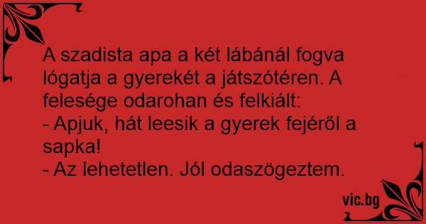 A szadista apa a két lábánál fogva lógatja a gyerekét a játszótéren. A felesége odarohan és felkiált: