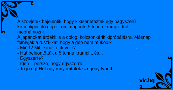 A japánokat érdekli is a dolog, kölcsönkérik kipróbálásra. Másnap felhívják a ruszkikat, hogy a gép nem működik.