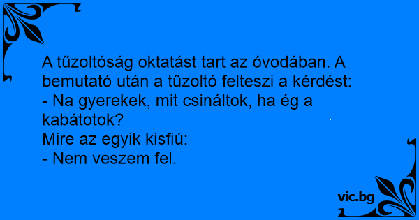 A tűzoltóság oktatást таrт az óvodában. A bemutató után a tűzoltó felteszi a kérdést: