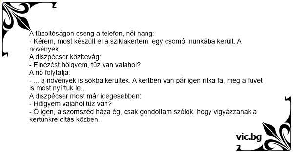 - Ó igen, a szomszéd háza ég, csak gondoltam szólok, hogy vigyázzanak a kertünkre oltás közben.