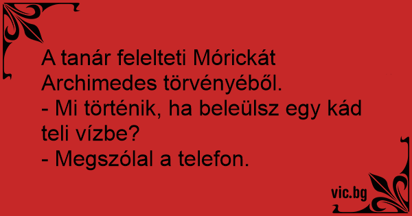 A tanár felelteti Mórickát Archimedes törvényéből.