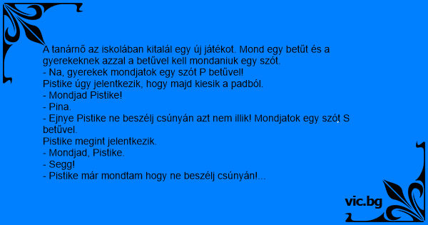 Na, most kifogok Pistikén, gondolja a tanárnő, T betűvel nincs semmi csúnya szó.