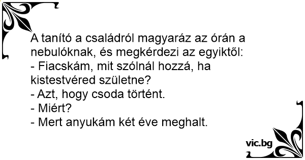 A tanító a családról magyaráz az órán a nebulóknak, és megkérdezi az egyiktől: